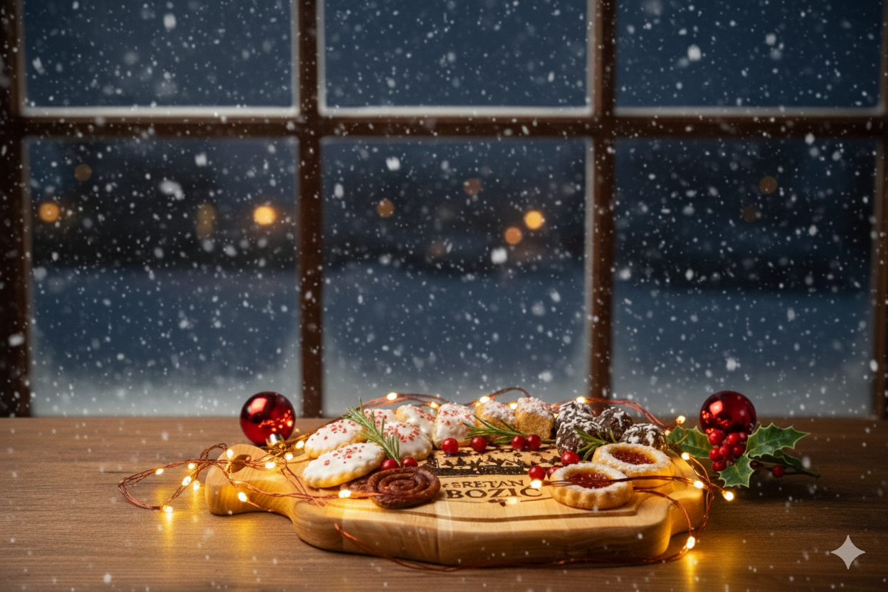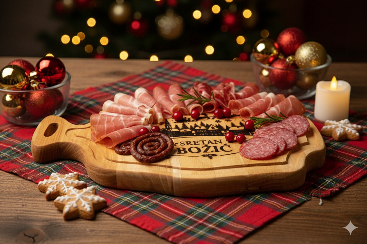 Predstavljamo vam “CHRISTMAS” dasku, savršeni spoj prirodne elegancije i božićnog duha, idealnu za svečano posluživanje ili kao jedinstveni blagdanski poklon.