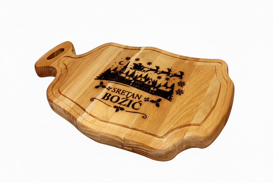 Dizajn: Karakterističan oblik i prekrasna gravura s božićnim motivom (“Sretan Božić”) unose toplinu i blagdansku atmosferu u svaki dom. Zašto odabrati našu dasku “CHRISTMAS”?