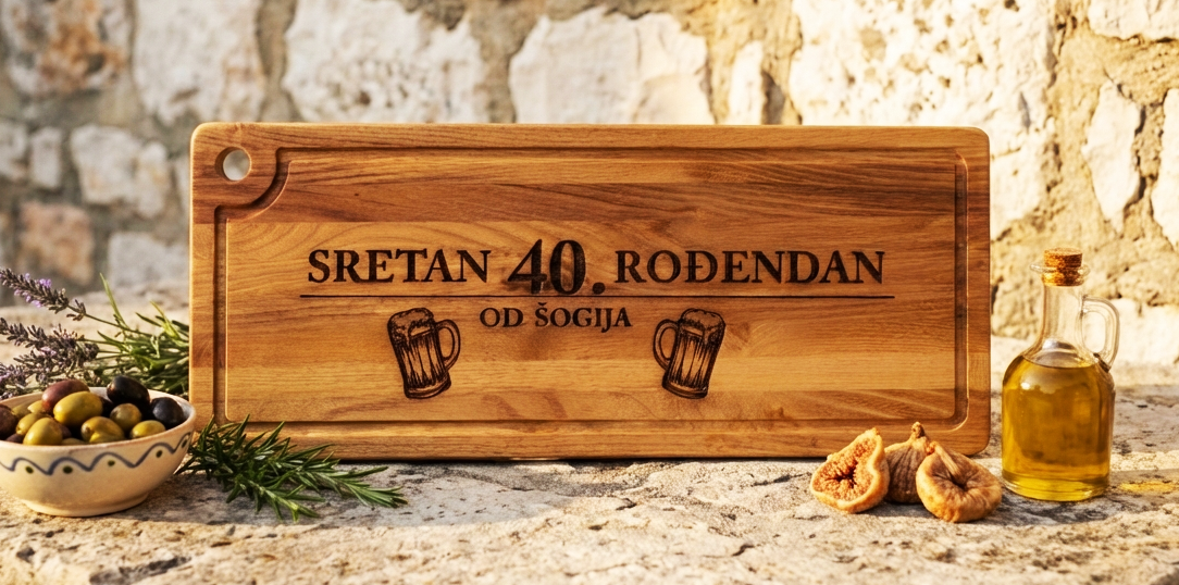 Tražite li poklon koji će oduševiti slavljenika i trajati godinama? Ova masivna daska od bagremovog drveta nije samo kuhinjski alat, već centralni dio svake proslave. Svojom dužinom od 60 cm i mogućnošću laserske gravure, savršena je za serviranje roštilja i narezaka.