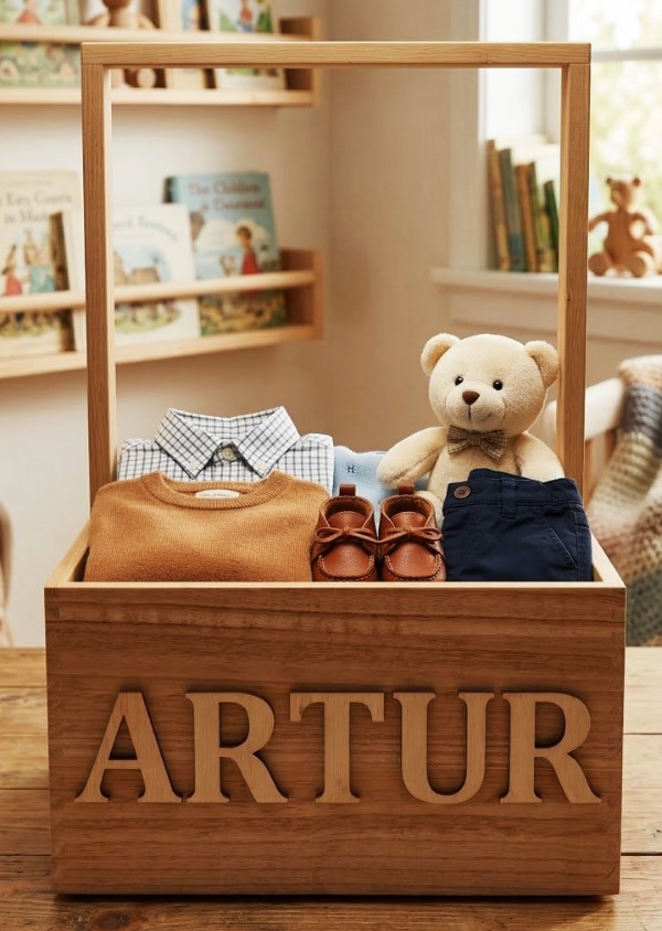 Potpuno personalizirana: Prilagodite drvena slova na prednjoj strani kako biste stvorili jedinstvenu kutiju s imenom vašeg djeteta (poput primjera “ARTUR” na slici). To je savršen način da pokažete koliko vam je stalo i stvorite dar koji je doista jedinstven.
