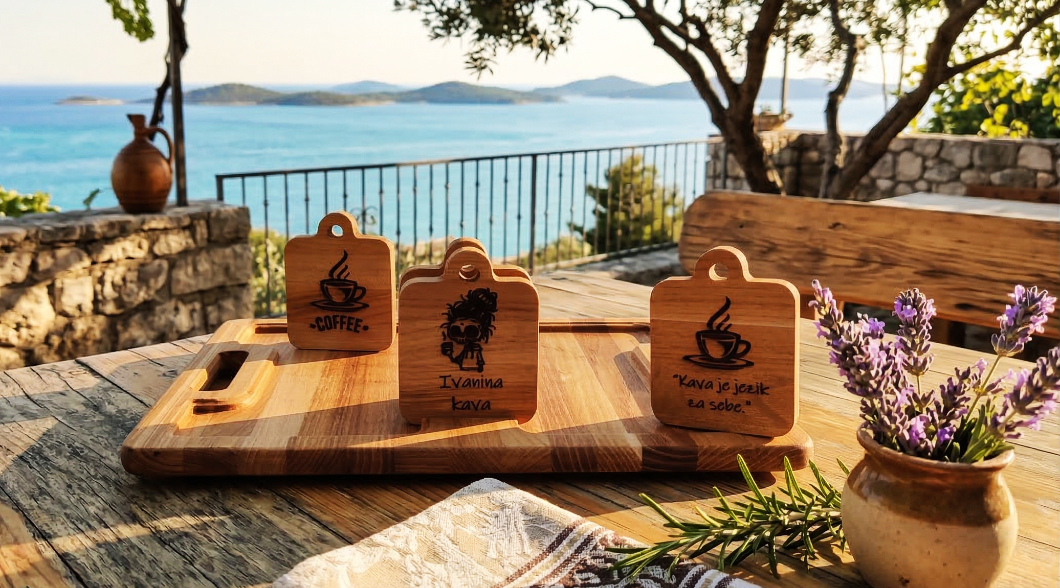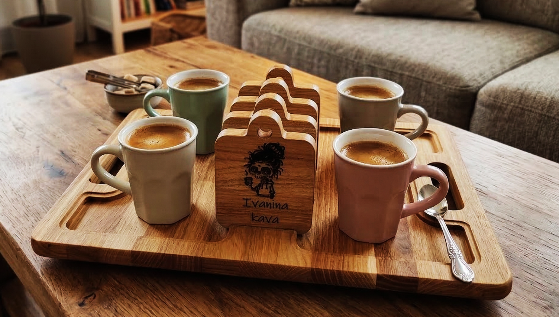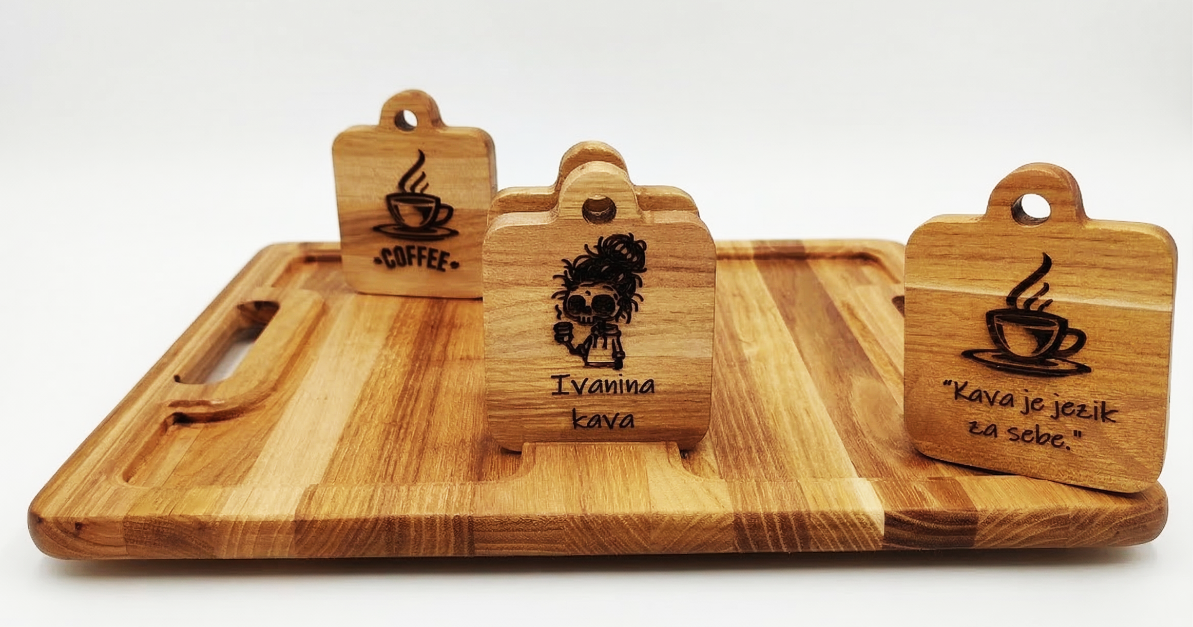 Pladanj za serviranje “Coffee Time”, sastoji se od glavnog pladnja od bagrema i četiri jedinstvena, modularna drvena podmetača. Bagrem je drvo poznato po svojoj ljepoti i trajnosti, s bogatom, toplom teksturom koja se savršeno uklapa u svaki interijer.